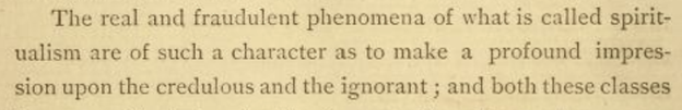 Before we get to the debunkers, we need to take a look at what was being debunked. For that, let’s hear some personal testimonies from 100 Spiritualist converts in this collection available on The Internet Archive. A few patterns emerge. Many of the testators mention having been sensitive as children, many already believed in other pseudo-science, and many were dissatisfied with traditional religion. Mrs. Sarah A. Webber of Guelph, Ontario, for example, said “[o]ne thing impressed me above all else: these people are happy and sure about their reward, instead of hoping that they will be saved.” And Rev. James C. Budlong, seen below, believed …”that Jesus and the apostles were undoubtedly mediums - and that the so-called miracles were performed by mediumistic powers.”